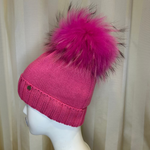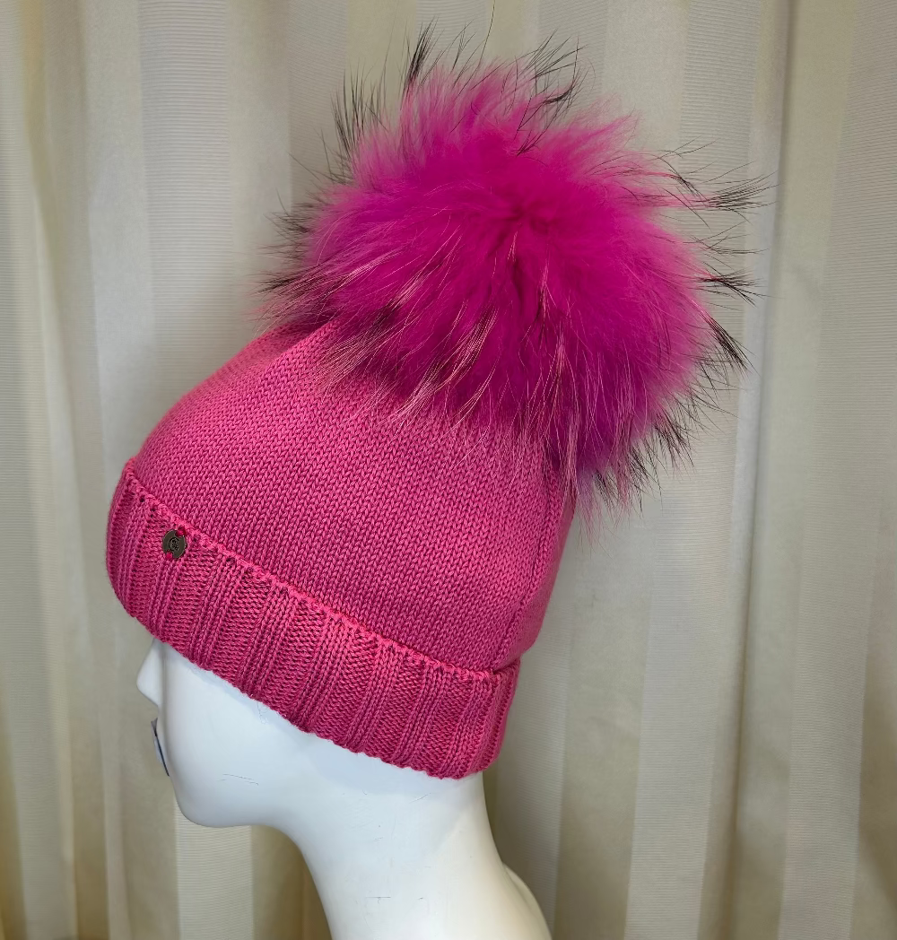 Cappello GIO HIGUAMY fuxia con pompon in mourmansky (100% Made in Italy)