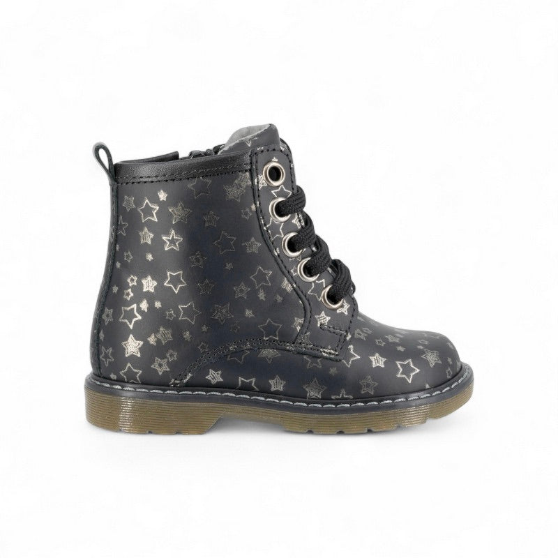 Anfibi BALOCCHI in pelle nera/stampa stelline con lacci e zip interna