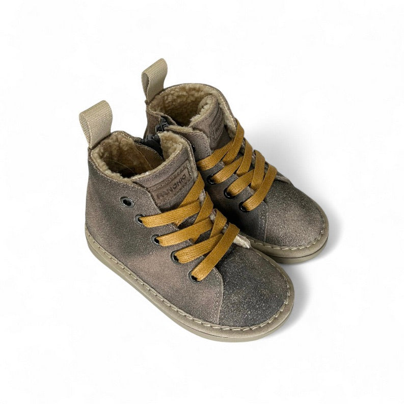 Polacchino PANCHIC in suede tortora con lacci, cerniera e fodera in pelliccia "orsetto"