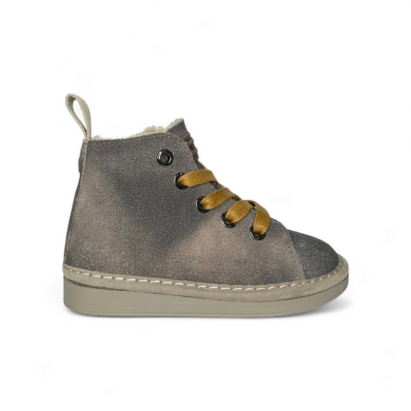Polacchino PANCHIC in suede grigio con lacci, cerniera e fodera in pelliccetta