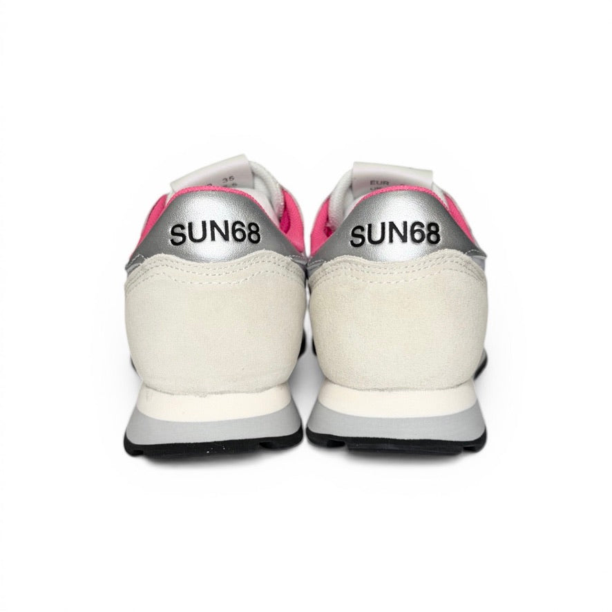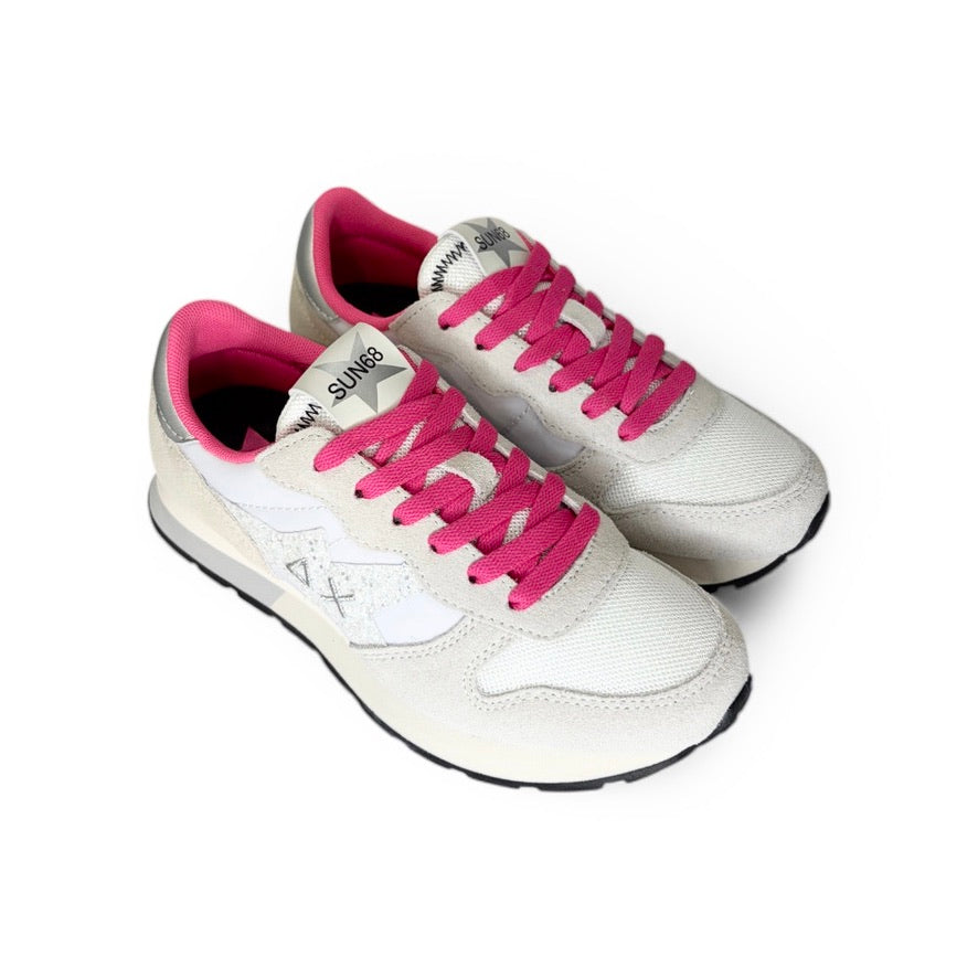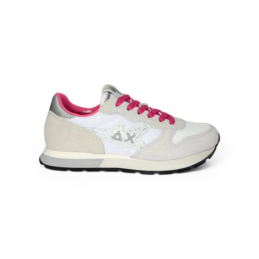 Sneaker ginnica SUN68 Teen girl in nylon e suede bianco, dettagli fuxia fluo con lacci