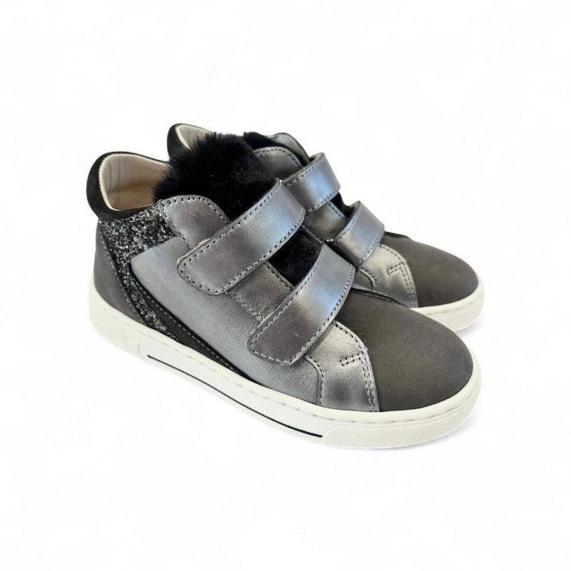 SNEAKERS BALOCCHI in nubuk grigio antracite e pelle metallizzata antracite con velcri