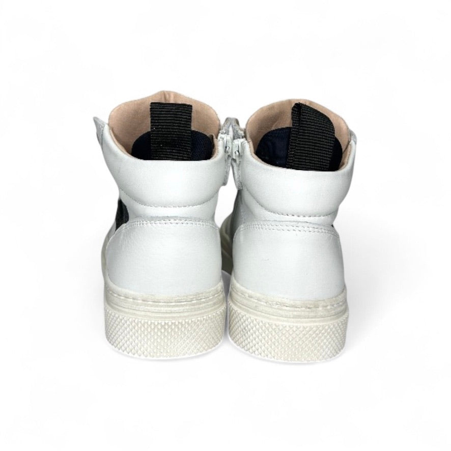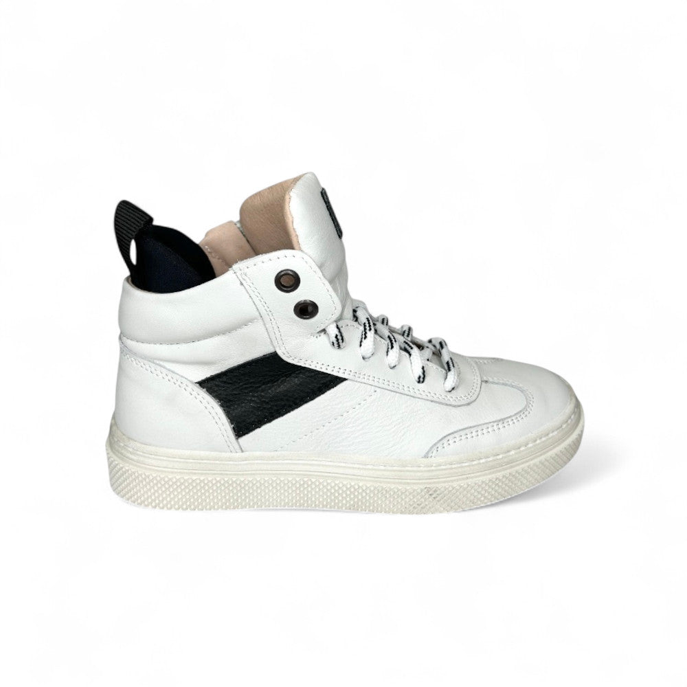 Sneaker DIANETTI mod basket mid in pelle bianca e nera con lacci e zip laterale