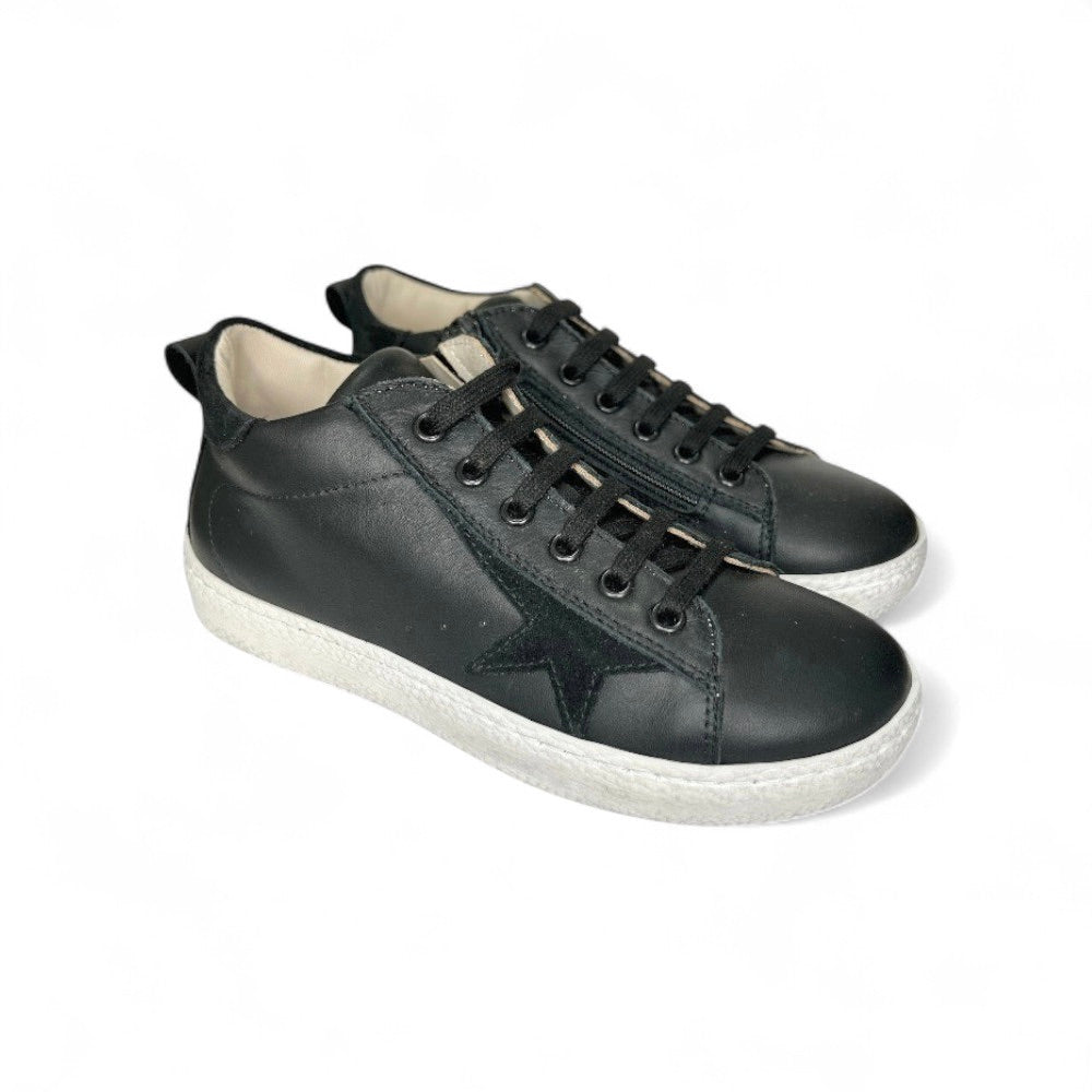 Sneaker LESCOUCOU in pelle nera con lacci e zip laterale
