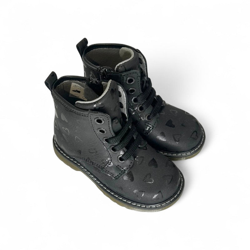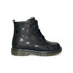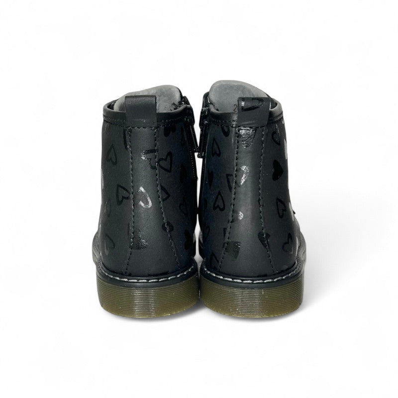 Anfibio BALOCCHI in pelle nera con stampa cuoricini, lacci e zip interna