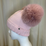 Cappello rosa GIO HIGUAMY misto lana con doppio pompon in volpe ecologica