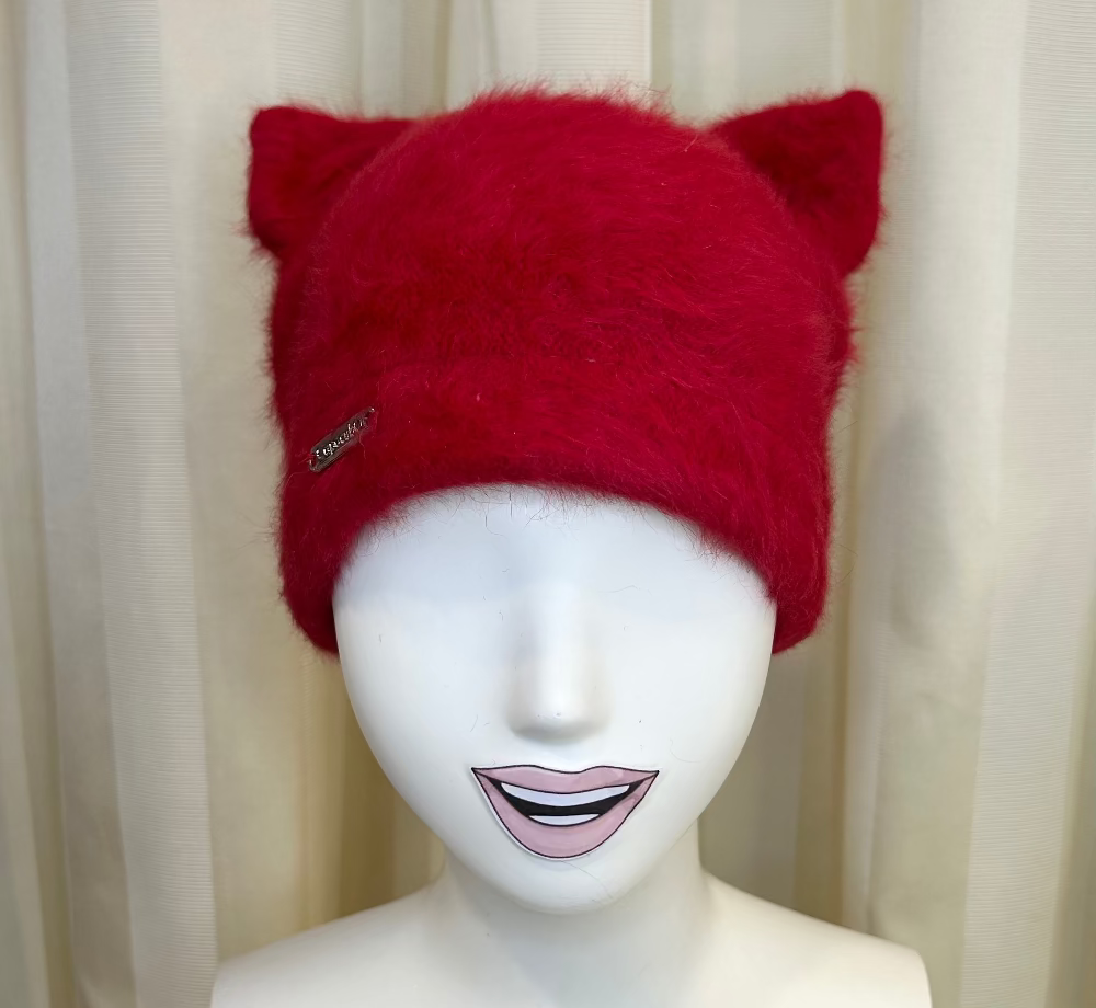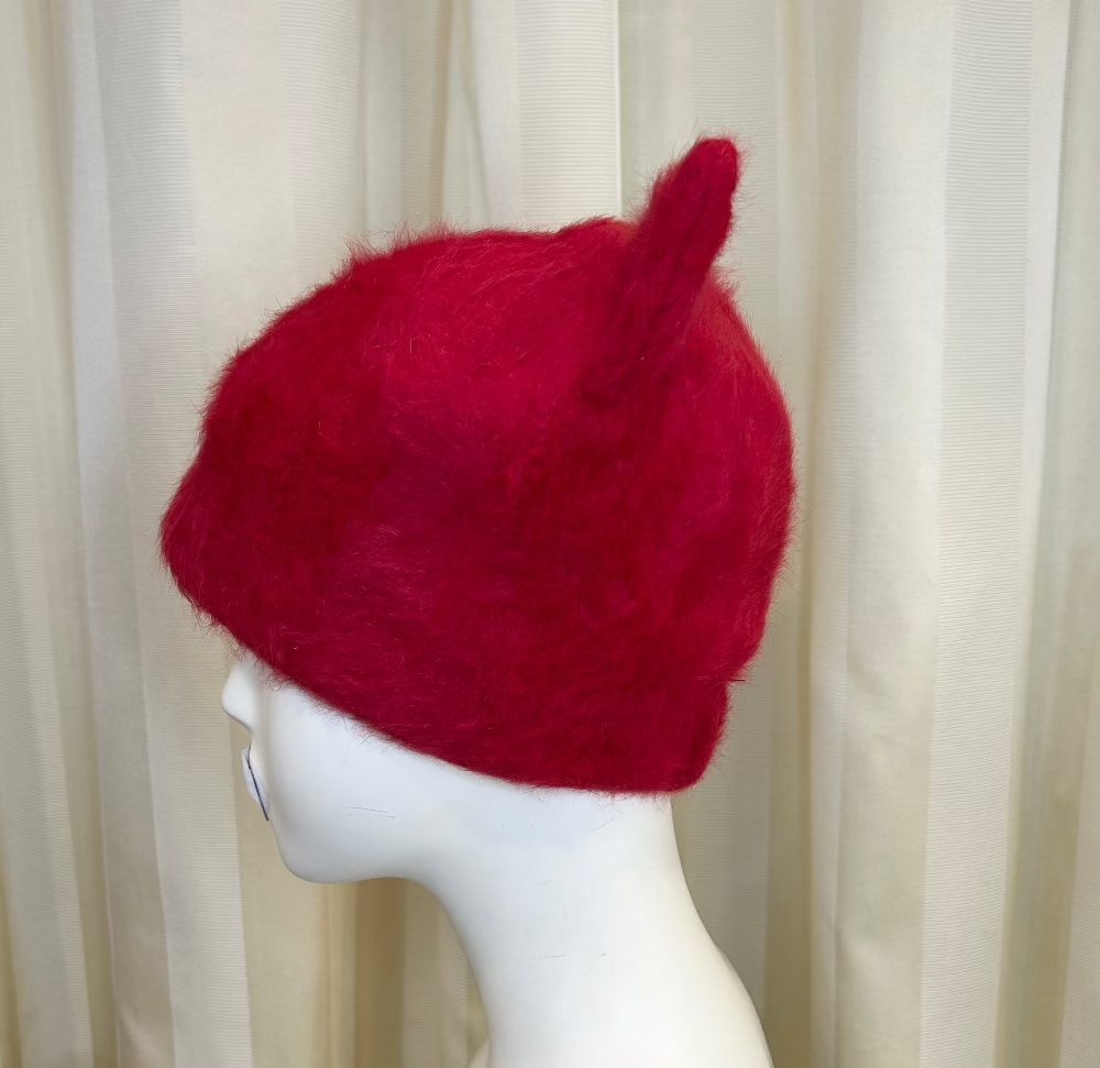 Cappello rosso "gattino" CAPOCUBO in misto lana e angora