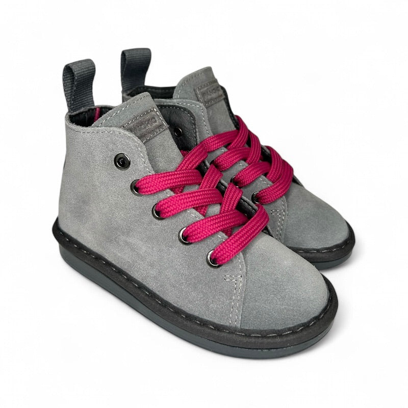 Polacchino PANCHIC in suede grigio con lacci e cerniera