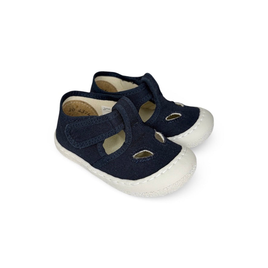 Primi Passi “2 OCCHI” BALOCCHI in cotone blu navy con velcro