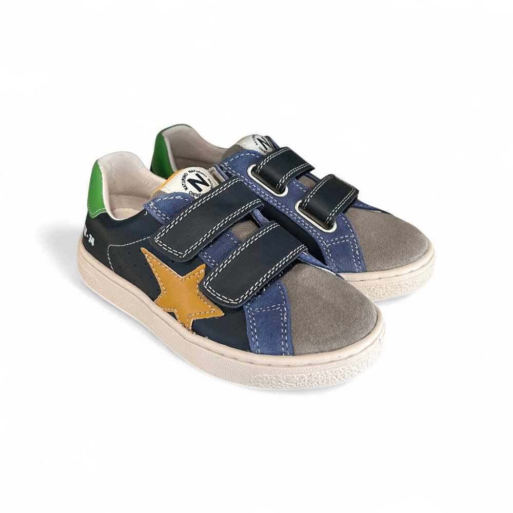 Sneakers NATURINO in pelle e suede blu/grigio/senape con velcri