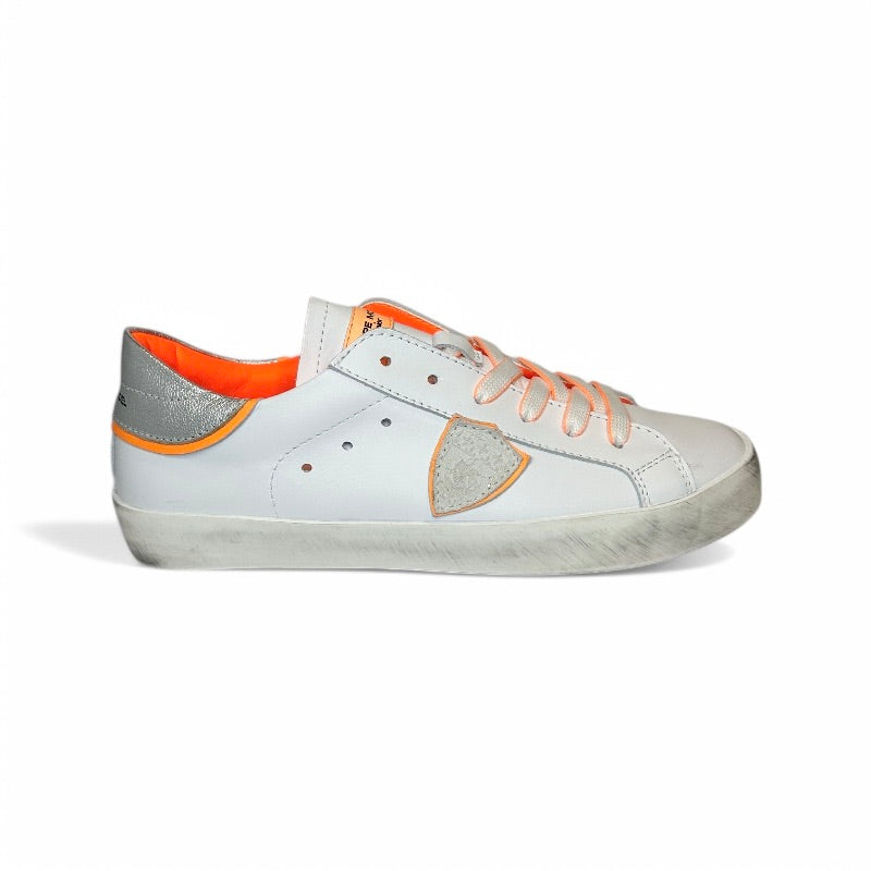 Sneakers PHILIPPE MODEL junior PARIS in pelle bianca, argento e arancio fluo