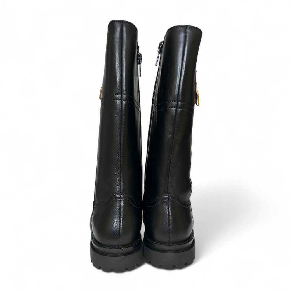 Stivali Patrizia Pepe Girl in pelle nera, perfetti per un look grintoso e alla moda. L'applicazione nel gambale aggiunge un tocco chic e personalizzato. La fodera e il plantare in pelle garantiscono comfort e stile. La zip interna (a tutta altezza) rende questi stivali facili da indossare e da togliere.