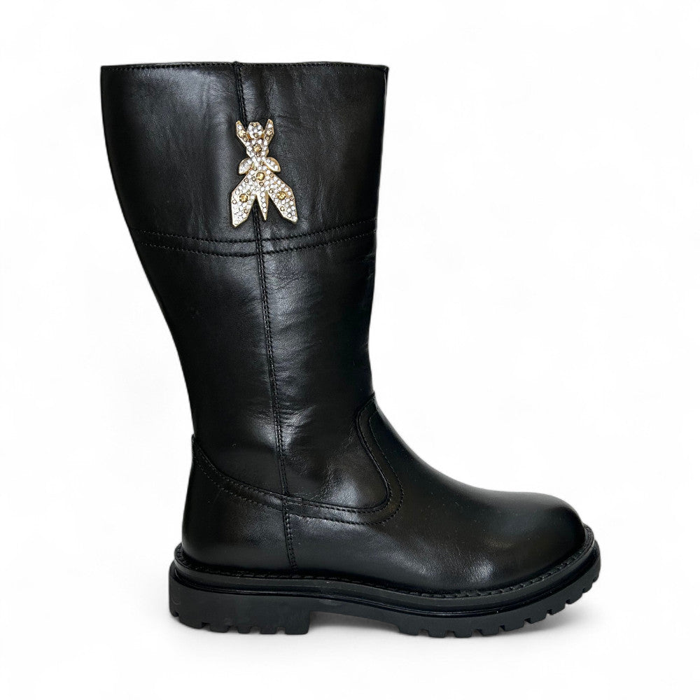 Stivali PATRIZIA PEPE GIRL in pelle nera con applicazione e zip interna